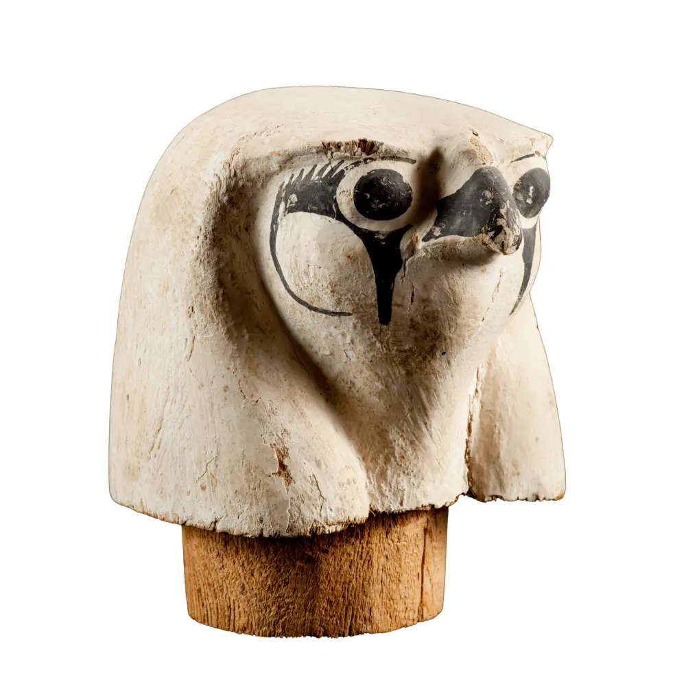 Canopic jar lid depicting Qebehsenuef, the Son of Horus with a falcon head, guardian of the intestines of the deceased.