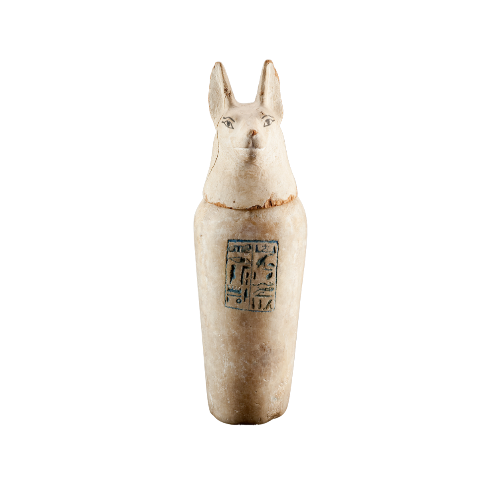 Canopic jar dedicated to Duamutef, the Son of Horus with a jackal head, guardian of the stomach of the deceased.