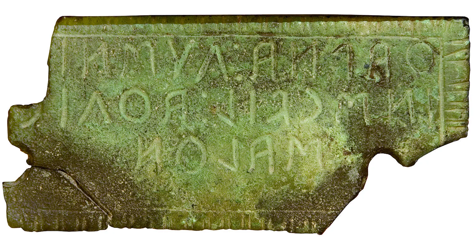 La targhetta, più tarda del Lampadario stesso, ci parla di una dedica per un santuario; probabilmente più che ricordare una nuova donazione potrebbe far riferimento alla prima donazione del Lampadario al momento della sua dismissione allorché il Lampadario diventa un semplice ex voto.