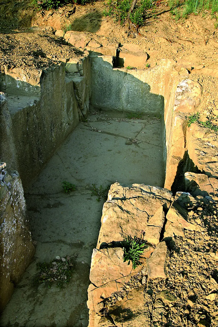 Dal terreno di riempimento di questa tomba proviene una lastra di arenaria con iscrizione incisa su di una delle facce, tutto all’ingiro: arnt p[e]tkes : veinal. Nel corso dei recenti scavi si è individuato, a fianco della tomba, un dromos forse riferibile ad un primo tentativo poi non concluso di realizzare un’altra tomba accanto alla nostra e un monolite che poggia su argilla che potrebbe essere stato utilizzato quale segnacolo della tomba stessa.