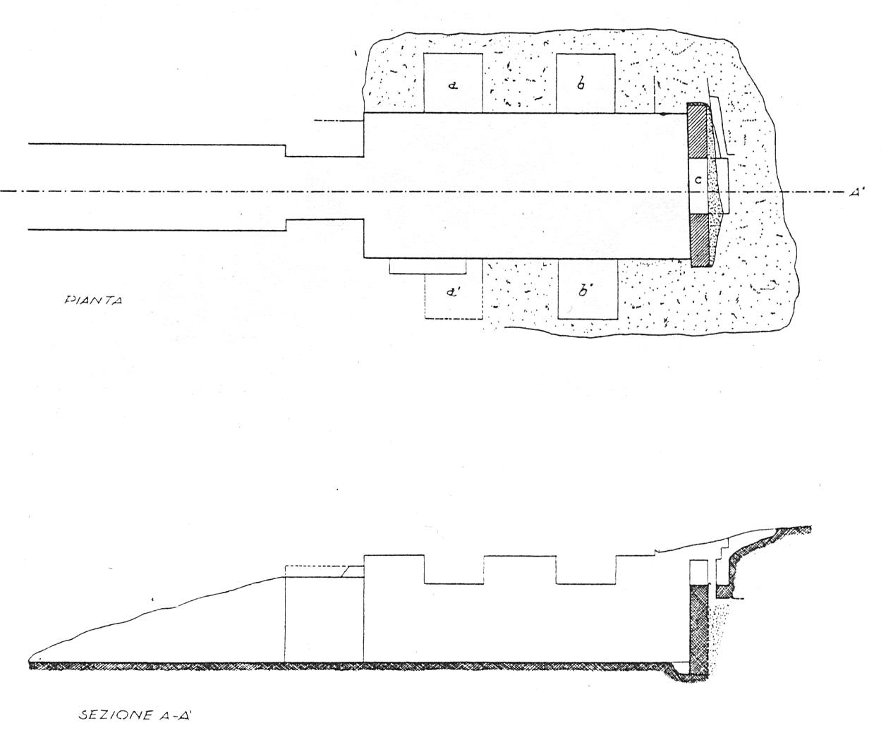 Vi si aprono 4 loculi nelle pareti laterali e uno nella parete di fondo, sotto al quale è inciso tutsitui. La parte superiore, ora mancante, era costruita in pietra arenaria locale. non vi è stato trovato alcun residuo di suppellettile. Sono notevoli alcuni elementi comuni alla tanella di Pitagora, individuati dal Maetzke: il rito cinerario, la disposizione dei loculi e il taglio del pietrame nella parte costruita. Anche questa tomba dunque potrebbe essere datata fra la fine del III e gli inizi del II sec. a. C.