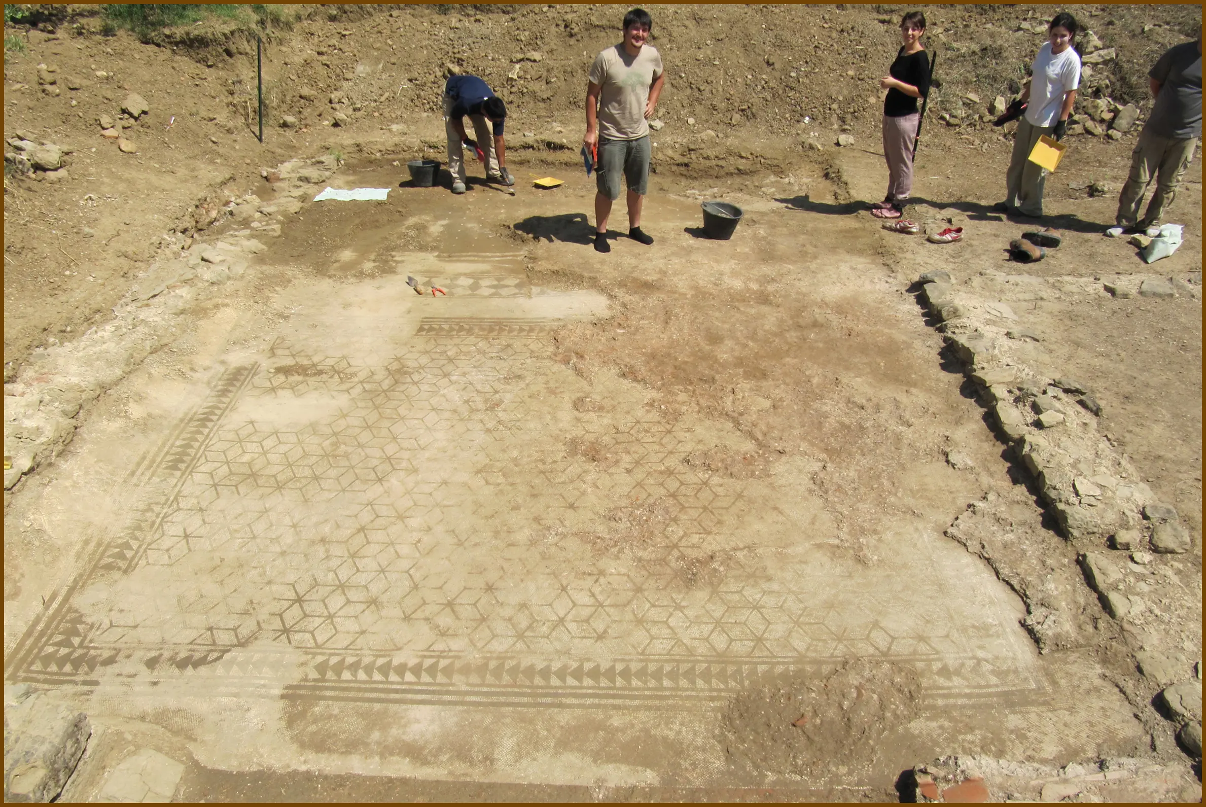 Gli scavi della villa ebbero inizio nel 1992 partendo dalla già visibile cisterna d’acqua e portarono alla luce l’intera struttura muraria della villa ed alcuni dei suoi tesori come i grandiosi mosaici e altri oggetti di uso quotidiano, visibili al Museo MAEC.