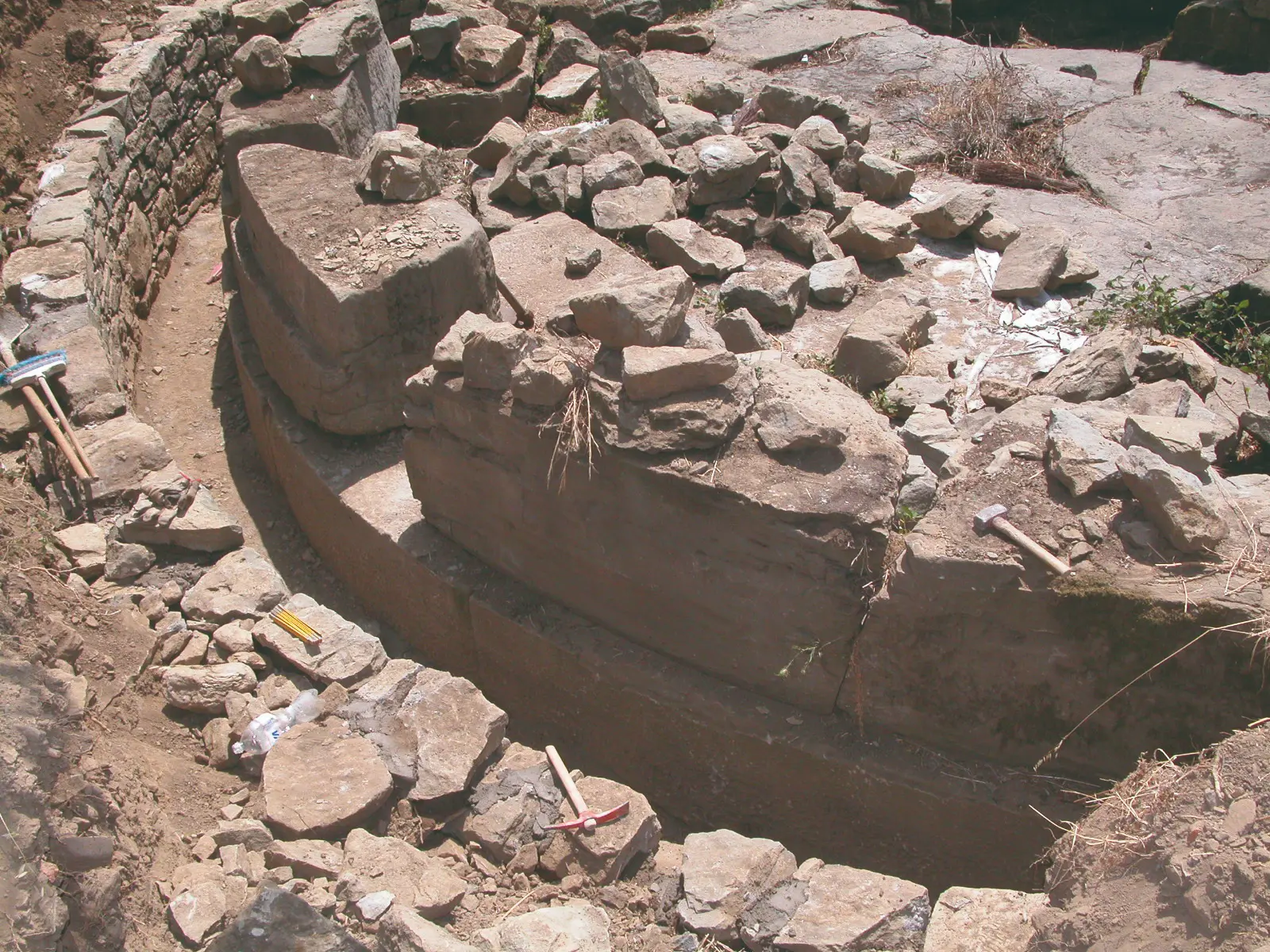 Durante gli scavi della tomba furono rinvenuti anche una serie di cinerari di età villanoviana, tracce dell’esistenza di una necropoli più antica ricoperta dalla realizzazione del monumento funerario in età ellenistica.